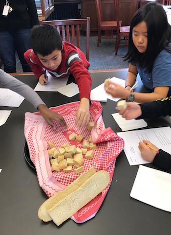 Ten-year-old Katie smelled the bread sample, thought for a moment, and wrote a number on the printed sheet. She could have been in science lab, except for the fact that her teacher Mme. Clivaz was speaking French. “Sentez! Touchez! Goutez!,“ These students were using their senses to test the quality of the French baguette.