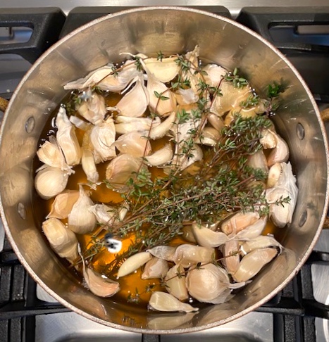So, I console myself with a steaming bowl of soup made with the simmered whole cloves of four heads of garlic. Braised and pureed garlic is sweet and restorative. The addition of a poached egg and toast makes it a satisfying lunch and leaves me feeling fortified for the coming season.