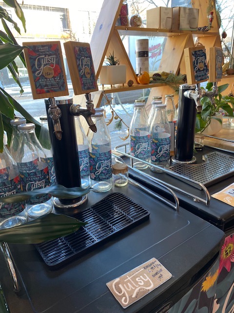 A growing number of small, no-waste (zero dechet) groceries is another example of Montreal’s eco-consciousness. My daughter gathered glass jars to fill during our visit to La Reserve Naturelle down the street from her home. This shop serves the neighborhood much as general store did in the frontier era. Shoppers fill their containers with cleaning supplies, kitchen staples, cosmetics and skincare liquids from bulk containers. Glass and reusable plastic containers are for sale to newcomers who arrive empty-handed. Where else could one find two flavors of kombucha on tap?