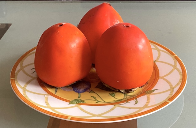 Persimmons are at the top of my grocery list from November through February, months when one or more varieties appear in our markets. It’s a mystery to me why this iconic fruit that’s been revered in Asia for 2,000 years is just now appearing in the States. Let me begin by introducing the ones you’re most likely to see at the supermarket.