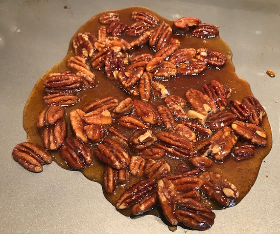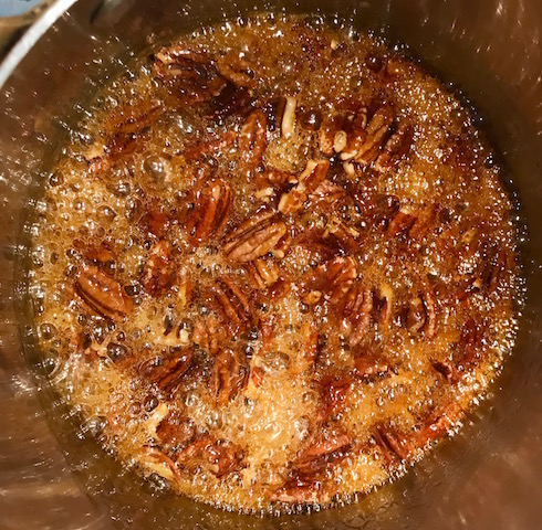 I like to think of caramelization as treating sugar to a controlled burn that leaves it with an agreeable bittersweet finish that accentuates the aroma of the nuts. It’s a technique that has stood the test of time. The original sugar glazed almond was created to aid in seduction in 17th century France. Are you surprised?. It was introduced to Louisiana from France as the Praslin in the 19th century. Americans replaced the almond with the abundant native pecan and the rest is history.