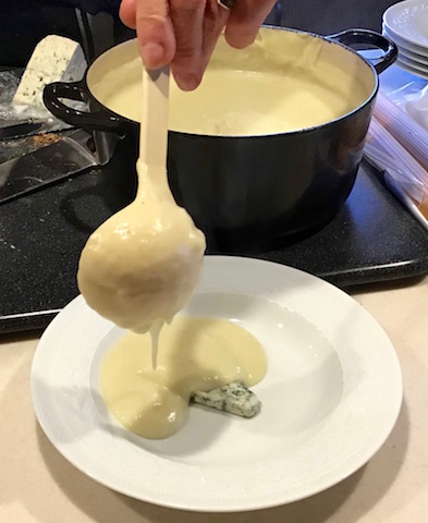 I prefer to surprise guests by placing a thin slice of blue cheese in the bottom of the soup bowl. The cheese is hidden, waiting to be discovered after the hot vegetable puree is poured over it. A garnish of fresh chives adds the comforting green aroma of Spring.