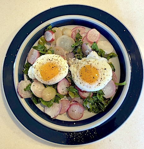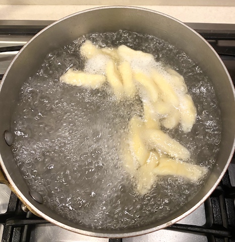 Today’s featured recipe is yet another, easier and unique gnocchi, called the gnudi, from the kitchen of Chef Sarah Stegner of Prairie Grass Cafe in Northbrook, IL. In a recent Zoom session Sarah demonstrated her recipe that replaces mashed potatoes with artisan goat cheese from Judy Shad of Capriole in Greenville, IN. Sarah blended goat cheese with flour, grated Parmesan and an egg in a stand mixer, but stirring the ingredients together by hand works just as well. The dough required just little extra flour on the work surface to roll out and cut into pieces. Like all fresh pasta, the gnudi cooked in 2 minutes and rose to the surface to be skimmed off I complete the whole process at home in less than half an hour.