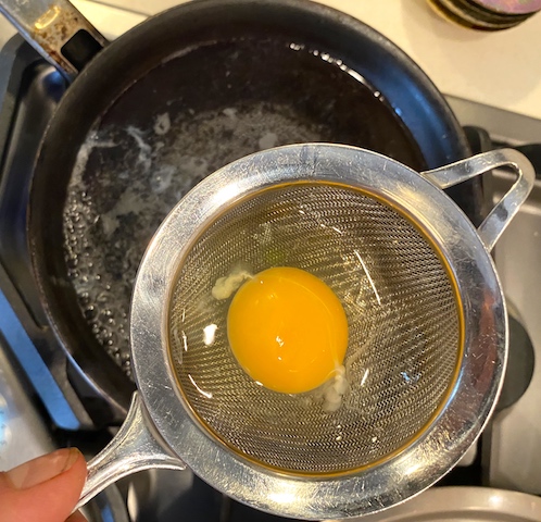 Sarah sautes cooked gnudi in butter for her daughter who prefers them fried.