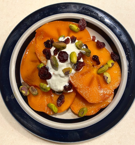 Persimmons are at the top of my grocery list from November through February, months when one or more varieties appear in our markets. It’s a mystery to me why this iconic fruit that’s been revered in Asia for 2,000 years is just now appearing in the States. Let me begin by introducing the ones you’re most likely to see at the supermarket.