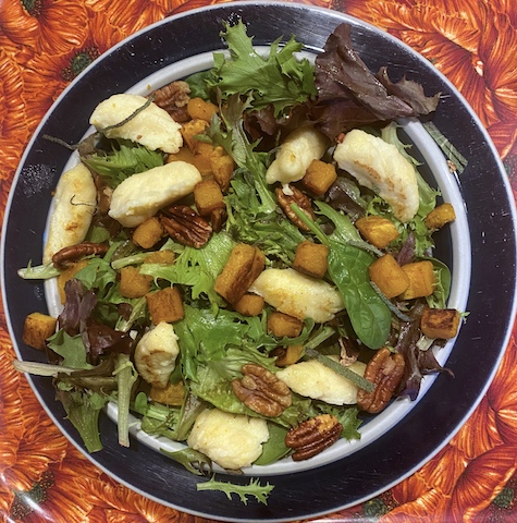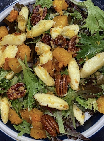 GOAT CHEESE GNOCCHI WITH BUTTERNUT SQUASH AND PECANS
