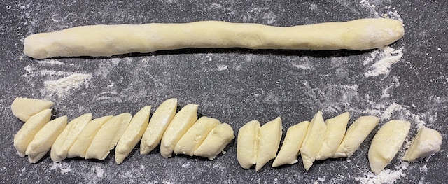 Less well known is the dumpling-shaped pasta known as gnocchi. Mashed potatoes replace much of the flour in this dough making it firm enough to roll into logs like cookie dough and cut into into individual pieces. The soft malleable gnocchi can take on any number of shapes from round, to oblong, to furrowed and stamped. You can purchase a wooden board to imprint the pasta if you don't have a nonna handy.